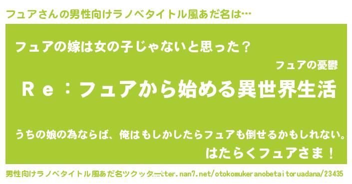 | 女子向けラノベタイトル風あだ名 | 『闇のフュア』『フュア様がみてる』 |