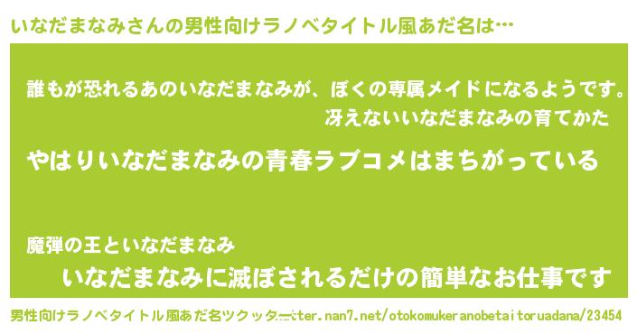 | 女子向けラノベタイトル風あだ名 | 『いなだまなみ伯爵の花嫁』 |