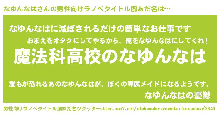 | 女子向けラノベタイトル風あだ名 | 『なゆんなはなんてお断りですっ。』 |