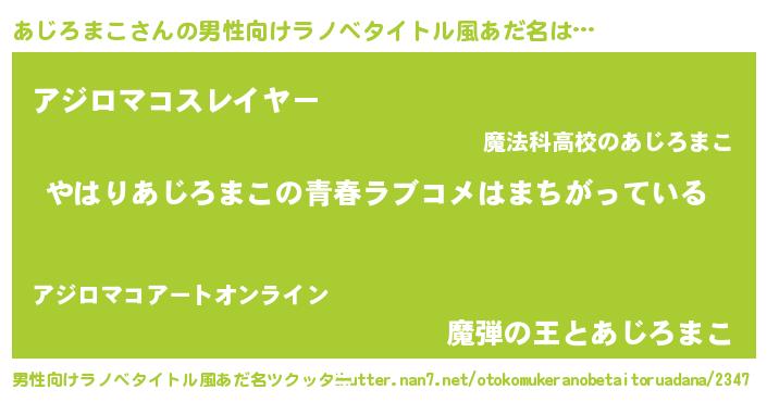 | 女子向けラノベタイトル風あだ名 | 『あじろまこの雑貨屋さん』 |
