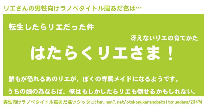 | ポケモン風あだ名 | 『リエゴンZ』『リエキング』 |