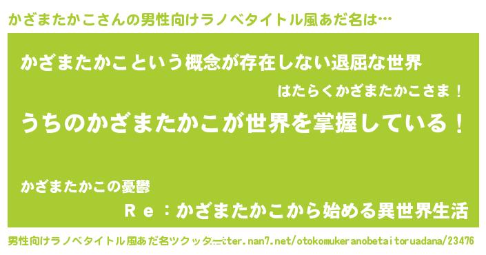 | 女子向けラノベタイトル風あだ名 | 『男装かざまたかこの憂鬱な任務』 |