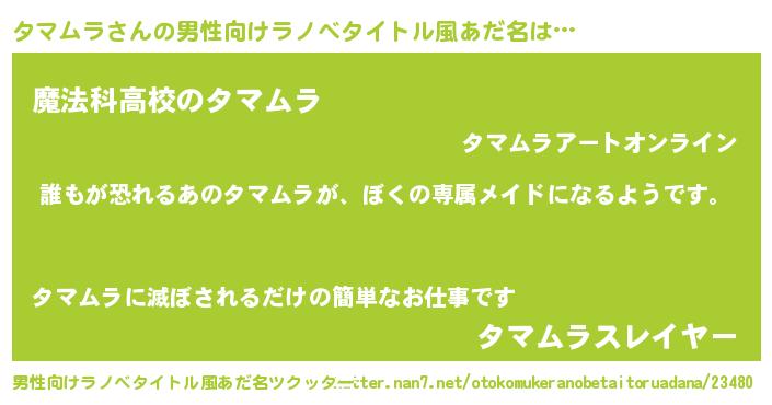 | 意味不明あだ名 | 『永久保存タマムラ』『自称タマムラ』 |
