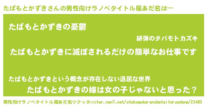 | 胡散臭い通販商品みたいなあだ名 | 『億万長者になれるブレスレット…その名も「たばもとかずき」』 |