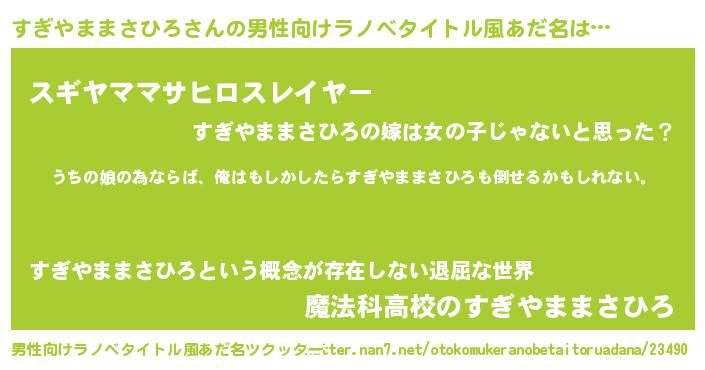 | 女子向けラノベタイトル風あだ名 | 『すぎやままさひろの婚約者』 |