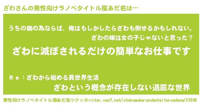 | 女子向けラノベタイトル風あだ名 | 『横柄ざわと宰相陛下』『ざわ伯爵の花嫁』 |
