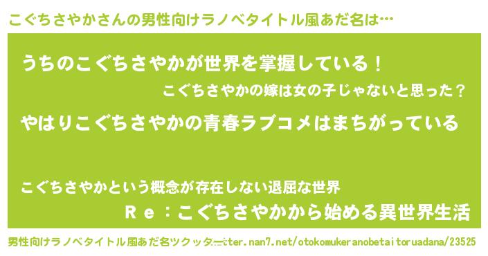 | 女子向けラノベタイトル風あだ名 | 『こぐちさやか伯爵の花嫁』 |