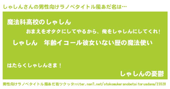 | 女子向けラノベタイトル風あだ名 | 『しゃしんの玉の輿計画!』 |
