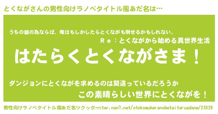 | 意味不明あだ名 | 『とくながフォーエバー』『自称とくなが』 |