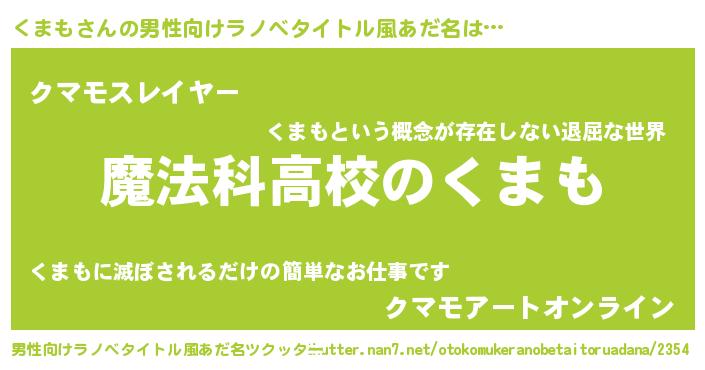 | 女子向けラノベタイトル風あだ名 | 『くまもなんてお断りですっ。』 |