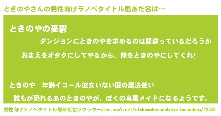 | 女子向けラノベタイトル風あだ名 | 『ときのや夫妻のなれそめ』 |
