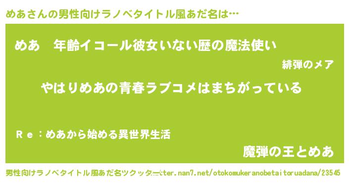 | 女子向けラノベタイトル風あだ名 | 『めあの雑貨屋さん』 |
