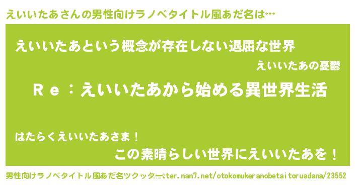 | 女子向けラノベタイトル風あだ名 | 『闇のえいいたあ』 |