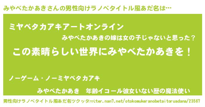 | 意味不明あだ名 | 『住所不定無職みやべたかあき(93歳)』 |