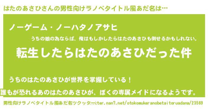 | ヘコむあだ名 | 『はたのあさひ(震え声)』『なまこ酢』 |
