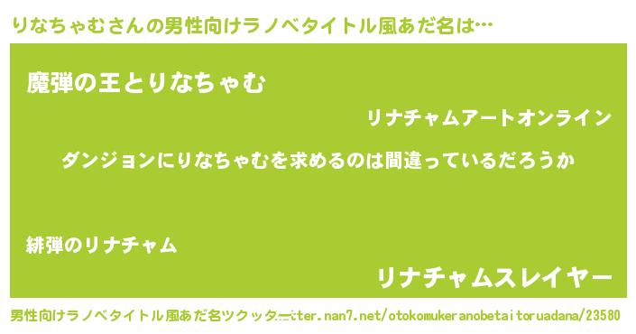 | 女子向けラノベタイトル風あだ名 | 『りなちゃむは平凡を望む』 |