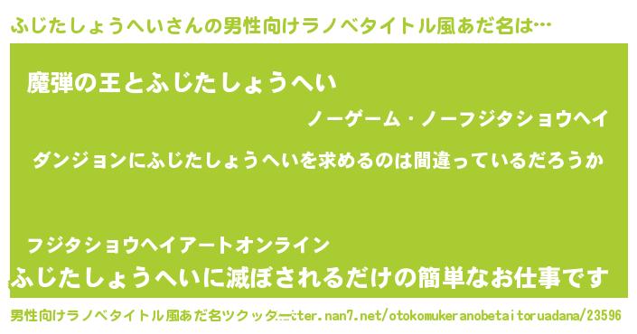 | 意味不明あだ名 | 『とにかく怪しいふじたしょうへい』 |