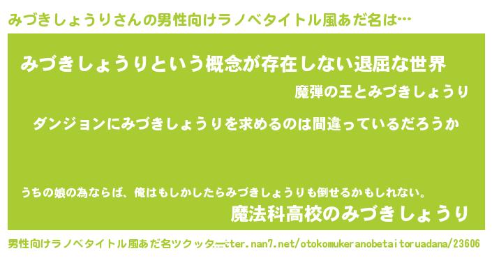 | 伝説のあだ名 | 『解き放たれた魔法使いみづきしょうり』 |