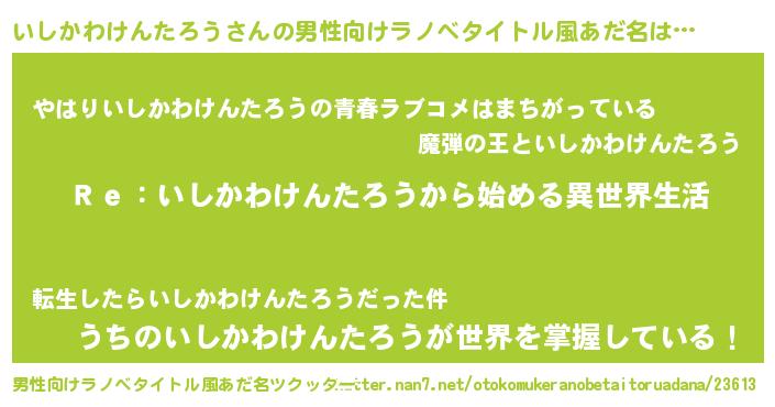 | 意味不明あだ名 | 『自称いしかわけんたろう』 |