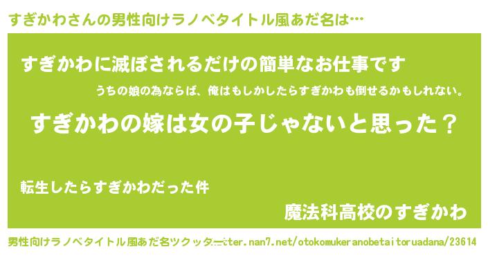 | ヒーロー風カッコイイあだ名 | 『炎刃騎士スギ』『最強戦士スギカワ』 |