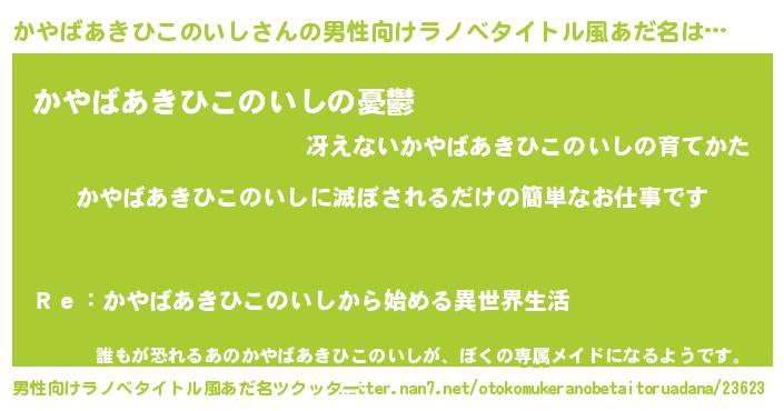 | 意味不明あだ名 | 『ペロリンかやばあきひこのいし』 |