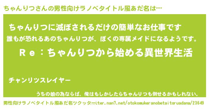 | 女子向けラノベタイトル風あだ名 | 『ちゃんりつストレイドッグス』 |
