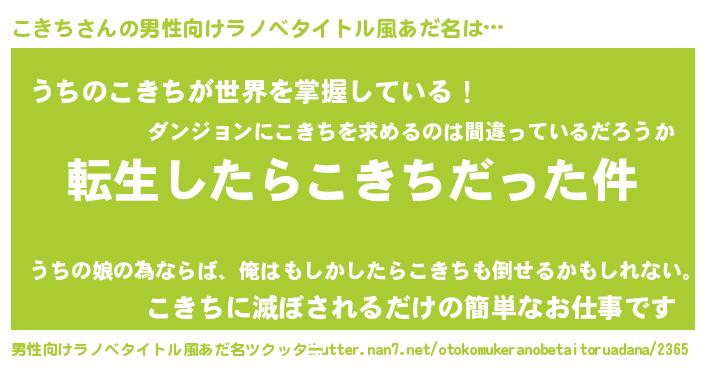 | 女子向けラノベタイトル風あだ名 | 『こきちの玉の輿計画!』 |