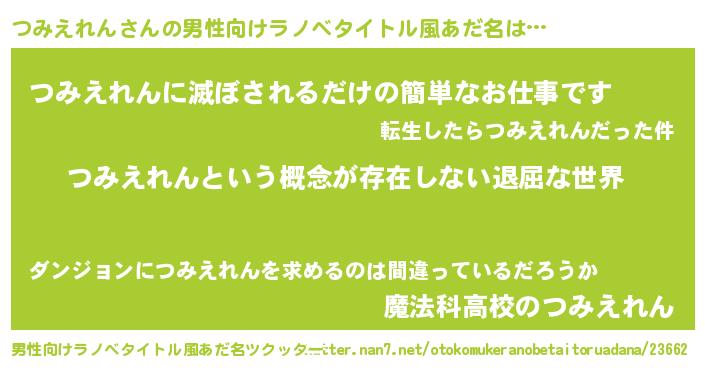 | 胡散臭い通販商品みたいなあだ名 | 『来世でも幸せになれる水素水…その名も「つみえれん」』 |