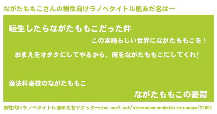 | 胡散臭い通販商品みたいなあだ名 | 『100人中100人が認めたマグネット磁石…その名も「ながたももこ」』 |