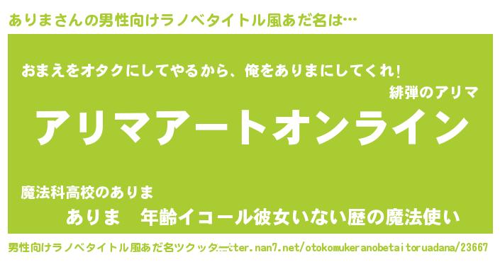 | 女子向けラノベタイトル風あだ名 | 『誰かこのありまを説明してください! ~契約から始まるウェディング~』 |