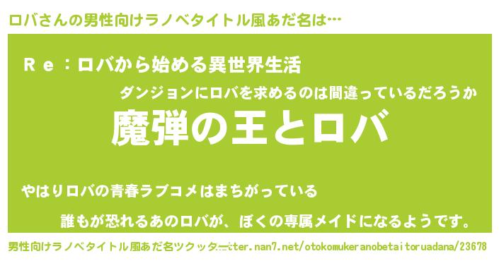 | ヒーロー風カッコイイあだ名 | 『仮面ロバダー』『最強戦士ロバ』 |
