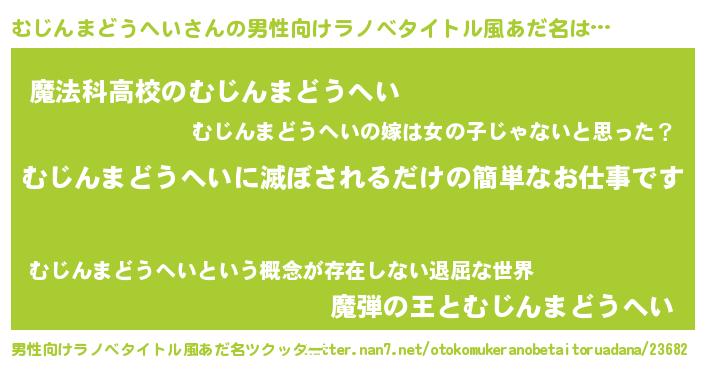 | ヘコむあだ名 | 『むじっ子』『むじんまどうへい(苦笑)』 |