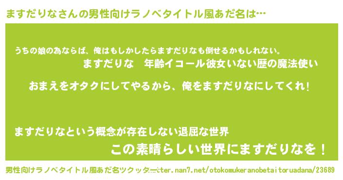 ますだりなさんの男性向けラノベタイトル風あだ名をツクッター!