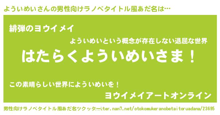 | 意味不明あだ名 | 『ペロリンよういめい』『自称よういめい』 |