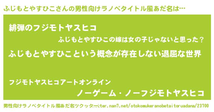 ふじもとやすひこさんの男性向けラノベタイトル風あだ名をツクッター!