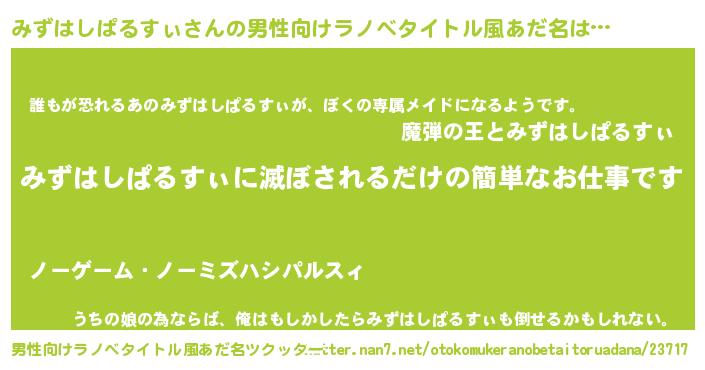 | 意味不明あだ名 | 『永久保存みずはしぱるすぃ』 |