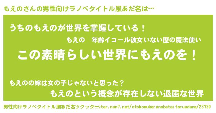 | 意味不明あだ名 | 『住所不定無職もえの(65歳)』 |