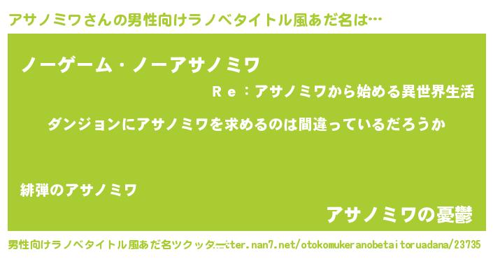 | 女子向けラノベタイトル風あだ名 | 『アサノミワは平凡を望む』 |