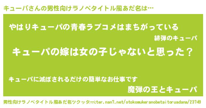 | 意味不明あだ名 | 『とにかく怪しいキューパ』 |