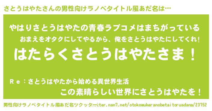 | 胡散臭い通販商品みたいなあだ名 | 『幸せが訪れる高級そうな皿…その名も「さとうはやた」』 |