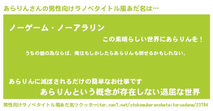 | 女子向けラノベタイトル風あだ名 | 『あらりんの婚約者』 |