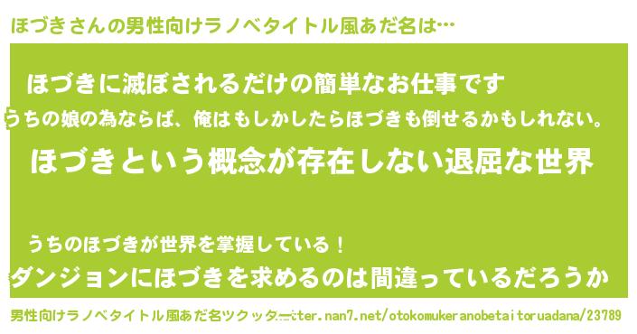 | 胡散臭い通販商品みたいなあだ名 | 『来世でも幸せになれる健康食品…その名も「ほづき」』 |