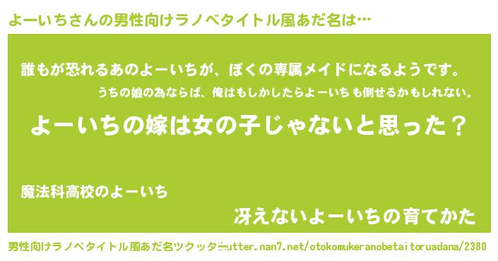 | 女子向けラノベタイトル風あだ名 | 『よーいち様がみてる』 |