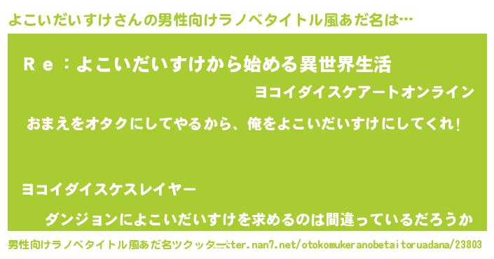 | 女子向けラノベタイトル風あだ名 | 『よこいだいすけ恋絵巻』 |