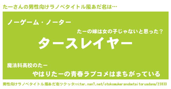 | 自動車の名前っぽいあだ名 | 『タールスーイス』『タンR』『タクア』 |