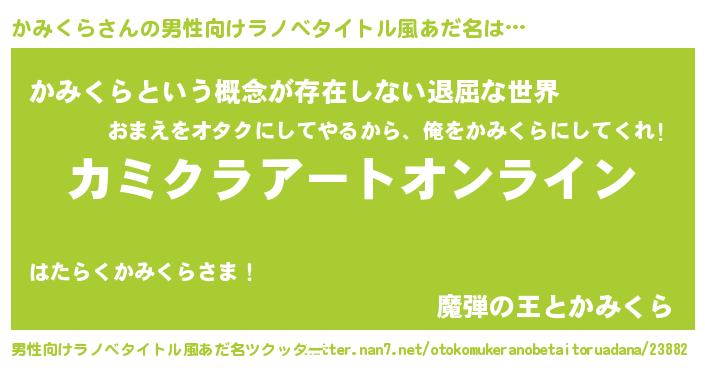 | ヒーロー風カッコイイあだ名 | 『スーパーカミクラ』『ネオカミクラ』 |
