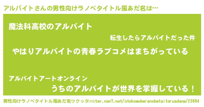 | ファンタジー風あだ名 | 『エターナルアルバイトー』『ゼアルトゥ』 |