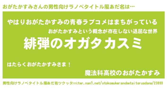 | 女子向けラノベタイトル風あだ名 | 『シンデレラおがたかすみ家の靴箱館』 |