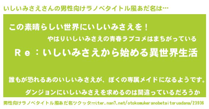 | ヒーロー風カッコイイあだ名 | 『最強戦士イシイミサエ』『仮面イシダー』 |