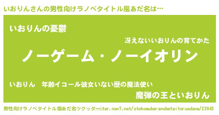 | 女子向けラノベタイトル風あだ名 | 『死神いおりんの再婚』 |